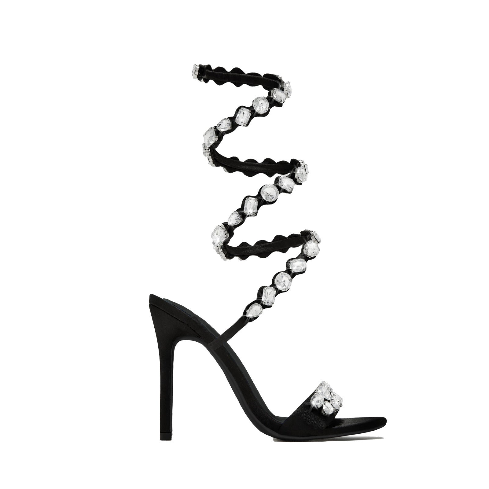 New Black Gold 11cm Stiletto Heel Small Round Toe Satin Surface Rhinestone High-heeled Sandals Summer Rivet