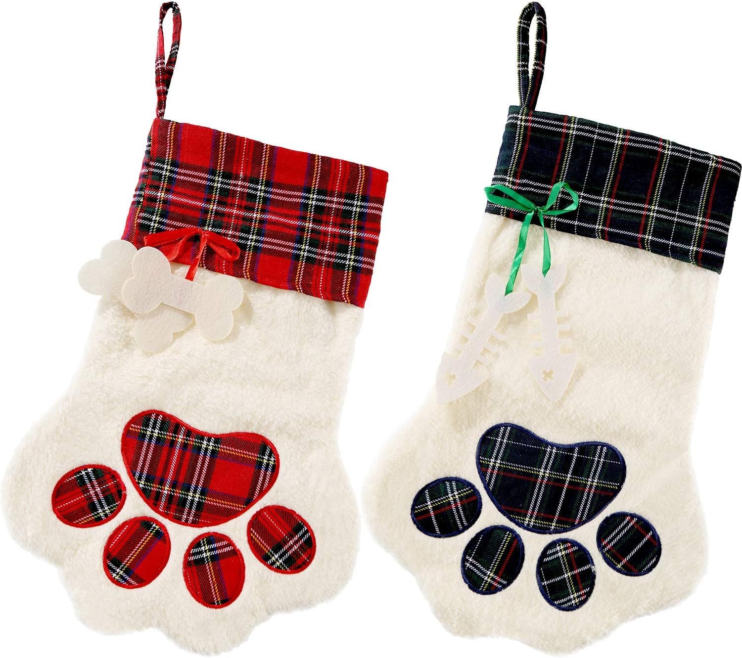 Pieces Buffalo Plaid Pet Stockings For Cats And Dogs - Paw Pattern Hanging Christmas Decorations