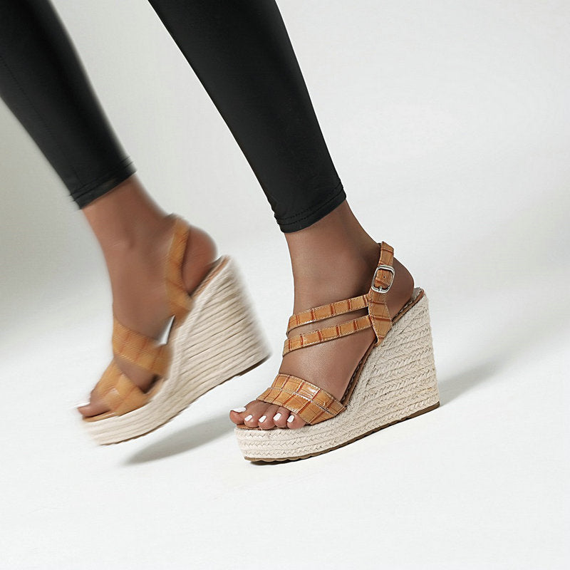 Sandals Women'S Summer New Style Wedge Women'S Shoes High-Heeled Roman Thick-Soled Straw Wedge Sandals Female Fairy Style Women'S Sandals