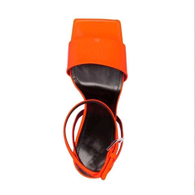 Summer New Open Toe Chunky Heel Square Toe Buckle High Heel Sandals