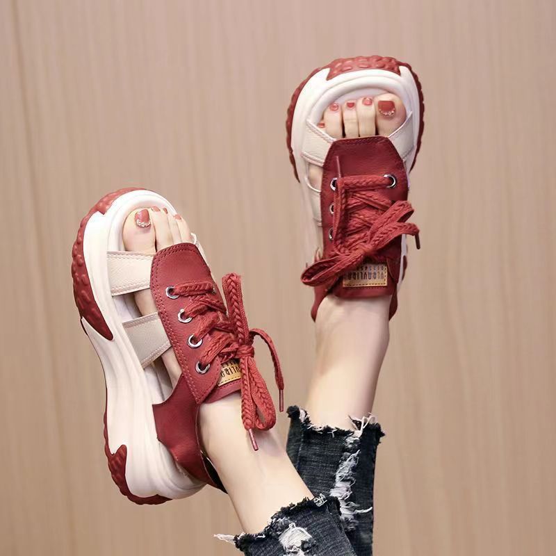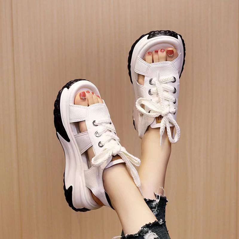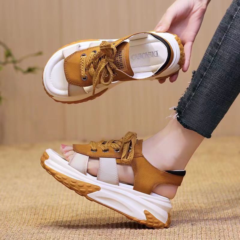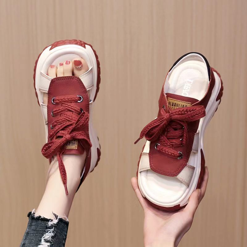 Thick-soled Casual Sandals Summer New Peep Toe Non-slip Lace-up Versatile Sneakers